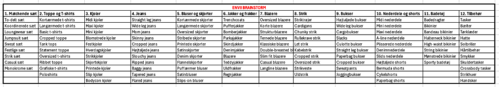 Der er flere søgeord, særligt long-tail søgeord som “Er skinny jeans stadig moderne?” og “Hvordan styler man en trenchcoat?”, som har lav organisk konkurrence, men samtidig potentielt kan tiltrække relevant trafik. At fokusere på disse niche-søgeord kunne være en omkostningseffektiv strategi for at opnå bedre organisk synlighed.